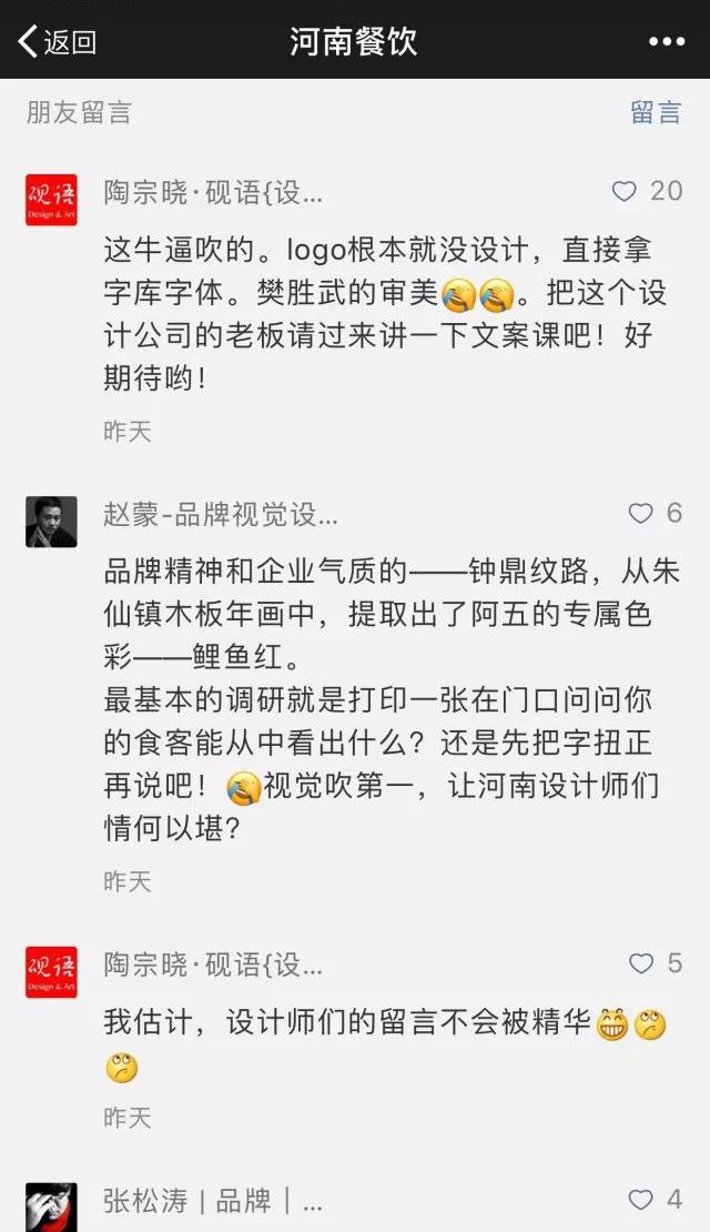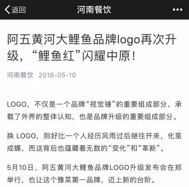 {{tag.name}}5月10日,公众号“河南餐饮”推出一篇名为“阿五黄河大鲤鱼品牌logo再次升级,鲤鱼红闪耀中原”的文章。一石激起千层浪,引发河南乃至全国设计师的广泛吐槽。